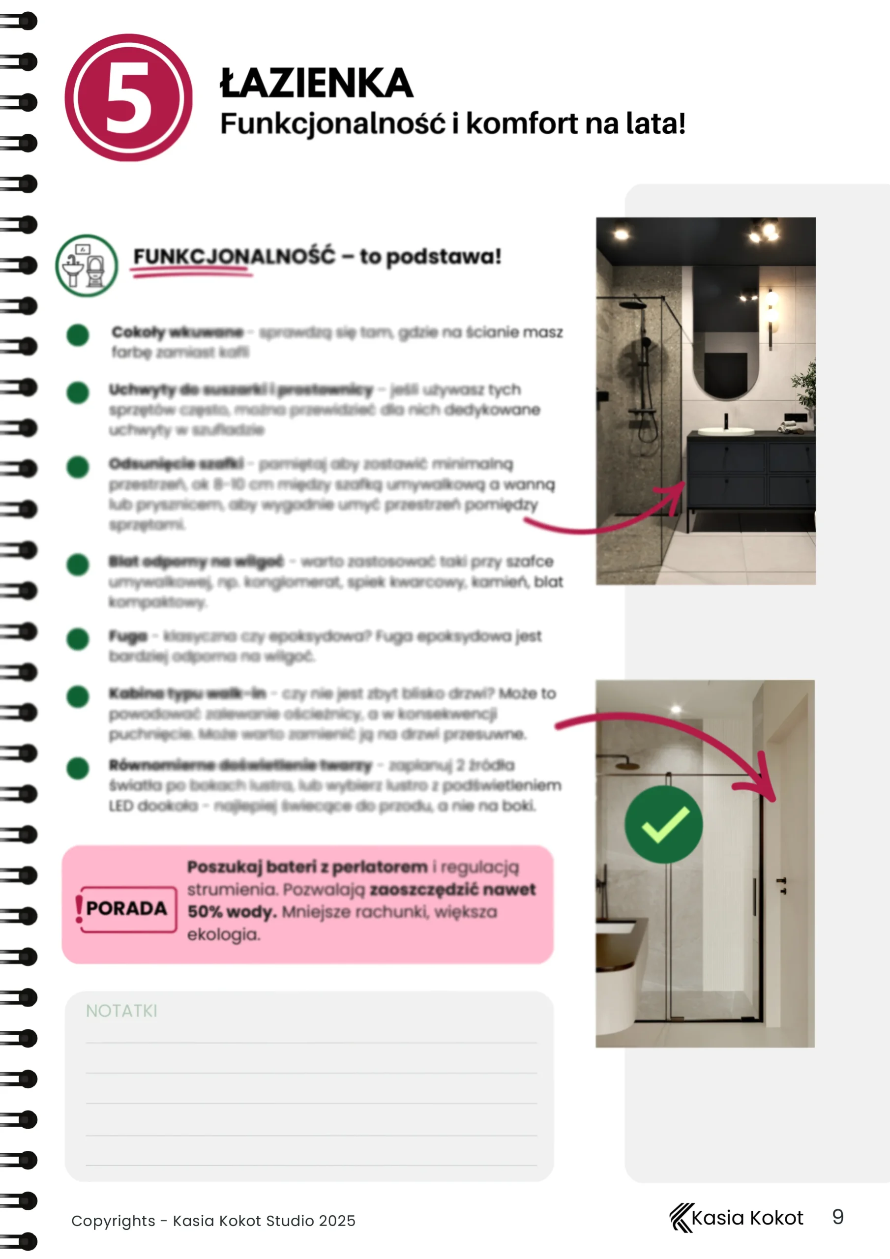Nie miałam pojęcia, że można zrobić podgrzewane lustro, które nie paruje, albo zamontować baterię Pot Filler, żeby nie dźwigać ciężkich garnków. Takie rzeczy odkrywa się zazwyczaj… za późno. Ten e-book pokazał mi rozwiązania, które naprawdę ułatwiają życie – szkoda, że nie miałam go przed remontem!